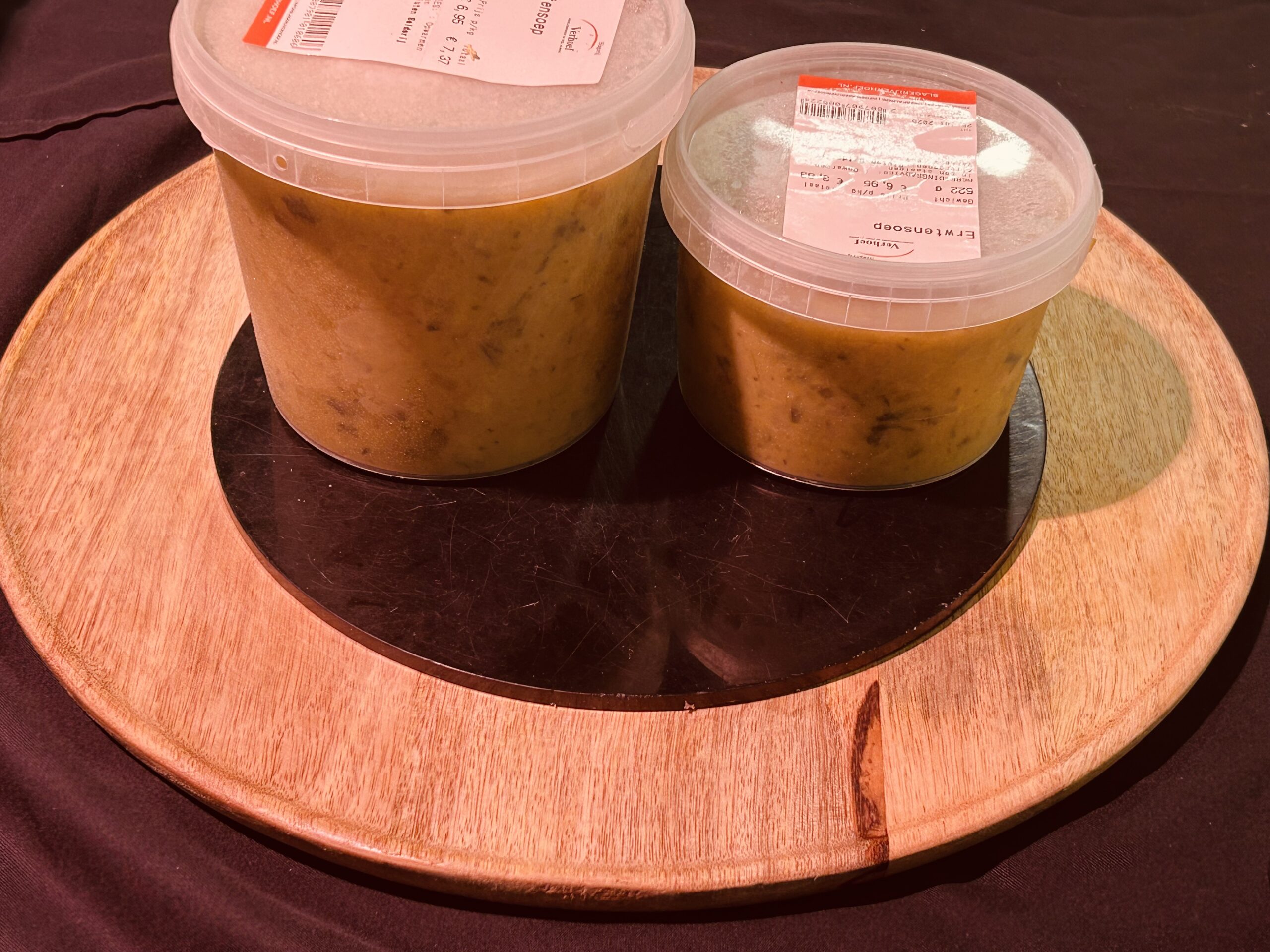 Een heerlijke huisgemaakte erwtensoep, rijk gevuld soep! Verkrijgbaar in ½ liter (500 gram) of liter (1000 gram)